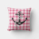 Rustiska båthus dekorativ kudde med ett ankartryck på rosa och vit gingham-bakgrunden i mönster. Anpassa med familjens monogram från första brev.