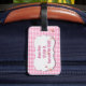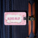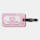 rosa gingham och blomma med avfasad märkre bagagebricka