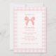 Rosa Gingham Rosa Bow Birthday Inbjudningar