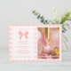 Rosa Gingham Rosa Bow Birthday Photo Inbjudningar