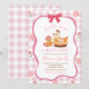 Rosa Gingham-rutig Chick-flicka Barnkal Invitation, Lilla Chickan är på väg att kläckas Barnkal, Redigerbar Lilla Kyckling Barnkal