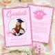 Dela din examenståndning över din graduates stora prestation med det här Rosa Rutiga Band Foto Examenutskicket. Med ett delikat handritat rosa rutmönstrat band och en plats för din graduates foto, är detta vykort lekfullt, elegant och perfekt för att skicka till vänner och familj. Helt anpassningsbart med namn, examensår och personliga detaljer, är det ett charmerande sätt att fira och minnas denna speciella milstolpe.