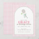 Fira din idrottares speciella dag med denna snygga rosa ginghams tennis födelsedagsinbjudan. Designad för sportiga flickor som älskar tennis, har denna inbjudan en klassisk atletisk stil som passar perfekt för en aktiv födelsedagsfirande.