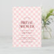 Mjuk rosa inbjudningskort för möhippa med gingham mönster. Tyst och förenklad.
