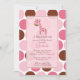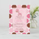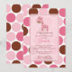 Bedårande bebis shower inbjudan med en rosa giraff på en brun och rosa prickig bakgrund. Matchande artiklar finns i vår butik. Perfekt för en bebis shower för en babyflicka. ©Stockberry Studio