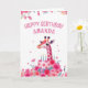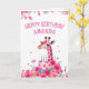 Rosa Giraffe och Blommigt Cake Birthday Kort