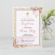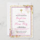 Rosa Girl Girl's Baptism Blommigt Glitter bjudande Inbjudningar