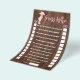 Rosa Cowgirl gissar vem babyskor Game Card. Om du vill ha ytterligare ändringar (teckensnitt färg, stil, ta bort eller flytta inslag) klickar du på Anpassa, rulla ned och klickar på länken "Redigera med Design Verktyg". ** Träets bakgrund är inbäddad i en utformning som ska tryckas på vit papper. ** - Sök efter alla matchande formgivningar - HUR DU SPELAR: Gästar gissa om Mamma eller Pappa sa att fraserna som står i listan kontrollerar deras svar på den lämnat sidan för Mamma eller högerna för Pappa.
