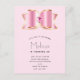 Födelsedagsfest inbjudan vykort med en glansig glimt med guld kontur och en fasad rosa gemstone i mitten. Feminin lyxglam.