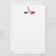 Stationär papper med en glam stil-design. Shock rosa läppstift och nagel polsk. Nagel-polaren flaska är öppen, ligger på sin sida, med droppar från nagel-polen som kommer ut.