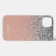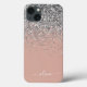 Roséguld - Rosa glans och silver falsk glimmer och droppande glitter Borstad metallmonogramnamn och initial mobiltelefon. Det här är den perfekta söta 16-årspresenten, bröllop, brudvisning, årsdag, baby shower eller möhippa present till någon som älskar glamourösa lyxiga och chic stilar.