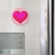 Den här magneten har ett formbart rosa hjärta med ett glasliknande utseende på en lila bakgrund.