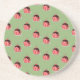 Rosa glass kopp med choklad och körsbär på gröntens bakgrund.