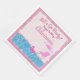 Dessa glamorösa och gigantiska party-blöjor har ett söt rosa Malibu Beach-tema. Realistiskt tittar vatten är en symbol längs grund, som liknar kristallklar vatten på en tropisk strand eller bassäng. En söt bassäng-stol och paraply visas på högerna, med en rosa flamingo-floatie på vatten. En rosa glitter ram gräns. Ett exempel på ett meddelande från Grattis på födelsedagen skrivs ut i mitten, där ett exempel på namn skrivs ut nedan i ett typsnitt av eleganten. Du kan anpassa blöjorna så att de innehåller ditt eget namn eller egen text.