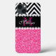 Rosa GLITTER BLACK CHEVRON MONOGRAM. Elke Clarke© 2013. Ursprunglig design. Finns i andra färg-kombinationer i vår butik Monogramgallery © at Zazzle. MODERN ROSA GLITTER (TRYCKT EFFEKT) MED BLACK OCH VITE CHEVRON MÖNSTER, MONOGRAMMED DITT NAMN, DITT INITIAL ELLER MONOGRAM PÅ ETT SVART RAND ELLER BAND MED EN GRÄNS AV TRYCKTA VITDIAMONDER. TRENDIG, CHIC COOLA CUTE DESIGN FÖR HENNE, TRENDSETTER, FASHIONISTA