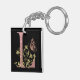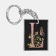 Söt rosa glitter initial/brev L med guld löv och snurrar och kopparfjäril mot svart bakgrund
