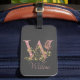 Söt rosa glitter initial/brev W med guld löv och snurrar och koppar över fjäril. Anpassa med tillagd namn i rosa av skriptteckensnitt. Kolvätebakgrund grått