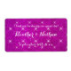 Anpassningsbar rosa lila glitter bröllop vin eller vår vattenflaska märkning. Vattenflaskmall med personlig elegant med glatt bakgrund struktur. Skripttypografi i finare för namn av brud och groom och tack för ditt budskap. Använda som klassad bord-dekoration eller tack för gästerna vid party. Omfattar namn eller monogram plus datum för giftermål. Faux glitter med gnistna gnistor och glimmer. Även bra för finare förlovning- eller jubileumssammankomst. Skapa dina egna etiketter för naturligt mineraliskt vatten med den här blanka DIY-mallen. Anpassadets bakgrund färg. Glamorösa tillbehör.