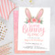 Rosa Glitter Bunny Blommigt Första Födelsedagsfest Inbjudningar