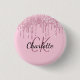 Rosa glitter droppar anpassningsbar monogram namn knapp