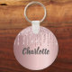 rosa glitter droppar i monogram lyx nyckelring