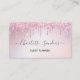 Rosa glitter som droppar affärskort. Silver rosa som droppar färg på en rosa metallisk tittar bakgrund. Snygg modern typografi. Kortet kan användas för alla yrken, insida-designer, konstnär, konstnär, evenemangsplanerare, salonägare osv. Samma design finns även på vit bakgrund.