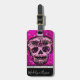 Shock rosa faux glitter är giftigt, elegant och chic. Sockerskallen firar Dia de los Muertos. Resa i stil med ett bagagetagg i monogrammet. Det är enkelt att uppdatera information om fronten och kontakten på baksidan med fet monogram.