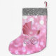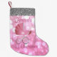 Den härliga julstrumpan för en flicka första jul som presenterar rosa design för glitter för Faux för barnvagnBokeh silver - personifiera med baby namn!