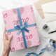 Den här pappra inslagningen har ett glamoröst Valentindagstema på mjuk rosa. Ett sött glitter-hjärta i rosa är bild under en XOXO hugs- och kysssedel. Den romantiska bilden är uppdelad över presentfigursättningen.