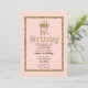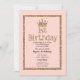 Rosa glitter krona för prinsessor 1-årsdag inbjudningar