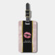 Personligens bagagetapp med en bakgrund bestående av ett modernt trendig ro guld tropiska löv mönster. Överst är ett svart ram med guld övertoning gräns, innanför är rosa glitter läppar.