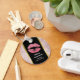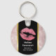 Nyckelkedja för personlig med en bakgrund som består av ett modernt trendig ro guld, det tropiska löven mönster. Överst är ett svart ram med guld övertoning gräns, innanför är rosa glitter läppar.