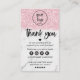 Söt rosa glitter marble Business tackar dig för ditt orderkort. Du kan ta bort eller flyttat runt medieikoner i social genom att klicka på "anpassa ytterligare" samtidigt som du anpassar dem. Enkel och modern med ett skriptteckensnitt. Byt färg i hjärtan och stjärnor om du vill.