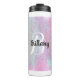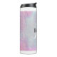 Rosa och blå glitter mönster med ett inledande monogram i vitt och namn i svart. Initial och namn kan anpassas.
