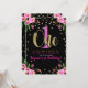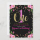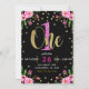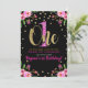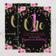 Rosa glitter ONE svart blomstermönster 1-års födel Inbjudningar