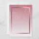Denna glamourösa och rosa födelsedagsfestinbjudan har en rosa glittergradientbakgrund. Glittret syns tätast högst upp på inbjudan och bleknar gradvis mot botten. En svart rektangulär textruta placeras i mitten och ramas in av en blank rosa ram. Texten är tryckt i rosa och kan anpassas med din egen festinformation.