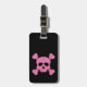 Den här anpassningsbarna bagagetaggen har ett glamoröst, snyggt, gotskt tema. En bild av en skalle och korsben trycks i mitten i en rosa glitter-design över en svart bakgrund.