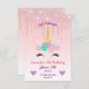 Rosa glitter som droppas/Blommig enhörning födelse Inbjudningar