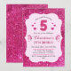 Rosa glitter, söt, pulserande, 5-årsdag inbjudningar