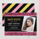 Rosa Glitter Photo Födelsedagsfest inbjudan har ord "Sweet sixteen" i ett roligt sans serif-teckensnitt i faux guld-folie med rosa glitter top och grund och svart mittbakgrund framtill. Inbjudan har en rosa-, svart- och faux-folie-guld-mönster på baksidan. Anpassa den genom att ersätta platshållartexten och ersätta exemplet/platshållarfotot med ett eget foto. Om du vill ha fler alternativ som att ändra teckensnittet och det är storlekt/färg eller mellanrummet mellan brev klickar du på knappen "Anpassa". *Observera att Zazzle Watermark som visas i zoomförhandsvisningen INTE visas på den färdiga tryckta produkten. Platshållarfotografi © Storytree Studios, Stanford, CA:s inbjudan © Rosewood and Citrus