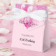 En rosa med rosa faux glitter drops och ballonger. Text: Tack skrivet med ett modernt handskript i stil. Anpassa och lägg till ett namn och ett datum.