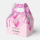 En rosa med rosa faux glitter drops och ballonger. Text: Tack skrivet med ett modernt handskript i stil. Anpassa och lägg till ett namn och ett datum.