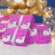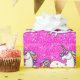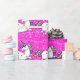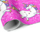 En färgstark, glatt rosa enmajsförpackning papper med en mönster av söta små knubbig som förenar sig med regnbåge, färgad hår, mane och svan, guld stjärnor på deras kroppar och gyllene hovar. De dansar över en glittrande rosa bakgrund av mousserande glitter. Detta rosa enmajsskrot skulle vara idealiskt för ett barns födelsedagsfest, för enmajshantverk och mycket annat.