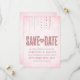 Denna fina "save the date"-design av The Spotted Olive™ har en vacker mjuk rosa bakgrund med en bild av glänsande ädelstenar och orden "Save The Date" stilfullt typsatta och fyllda med en bild av rosa glitter. OBS: DENNA DESIGN HAR ENDAST EN UTTRYCKT BILD AV GLITTER; DET FINNS INGET FYSISKT GLITTER SOM ANVÄNDS ELLER INGÅR; DET FINNS INGA UTSMYCKNINGAR. DETTA ÄR EN PLATT UTTRYCKT INBJUDAN. Copyright 2013-Nutid | The Spotted Olive™ | Alla Rättigheter Reserverade