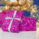Glamorös glitter-inslagning papprare med vibrerande, färgstarkt glassi delarare i djup rosa, fuchsia och violett färger - fototryck.