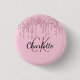Rosa glitterdroppar anpassad monogramnamn knapp