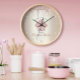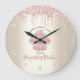 Gör ett stilfullt intryck med denna eleganta, sofistikerade, enkla och moderna anpassade namnväggsklocka. En glittrande, roséguld cupcake, handskriven scripttypografi och glitterdropp överlagrar en falsk metallisk champagne-guld ombre-bakgrund. Anpassa med ditt fullständiga namn, företag eller annan information. Du kan välja en rund eller fyrkantig urtavla. Gör ett chic, professionellt och fashionabelt uttalande i ditt kök eller på din arbetsplats.