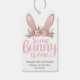 Gör dina födelsedagsfavoriter extra speciella med dessa charmiga kanintema-gavetaggar. Designen har en söt kanin med en vacker blomsterkrans som lägger en touch av elegans och nyckfullhet till din fest. Perfekt för en första födelsedag, är det eleganta rosa och guld färgschemat universellt tilltalande. Taggen kan enkelt anpassas med ditt barns namn och födelsedagsdetaljer. De är det perfekta komplementet till ditt partyt tema och skapar varaktiga minnen för dina gäster.