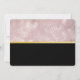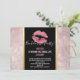 Inbjudan till möhippa med bakgrund bestående av moderna trendiga roségulda tropiska blad. Ovanpå ligger en svart ram med en förgylld gradientkant, inuti är rosa glitterläppar.