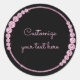 Girly och glam! Dessa klistermärken har en cirkel ram av glatt rosa stenar på svart bakgrund med koordinerande text från mitten. Anpassa med ditt speciella eller personlig-meddelande